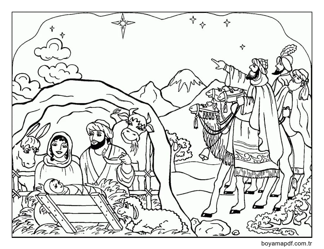 Doğum Sahnesi çocuklara ücretsiz Boyama Sayfası
