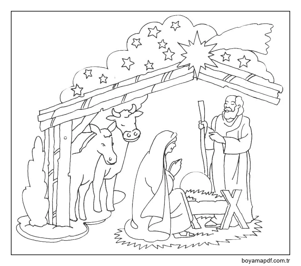 Aynı temaya sahip daha fazla boyama sayfasını görüntülemek için yan alandaki önerileri veya Dogum Sahnesi kategorisini inceleyebilirsiniz.