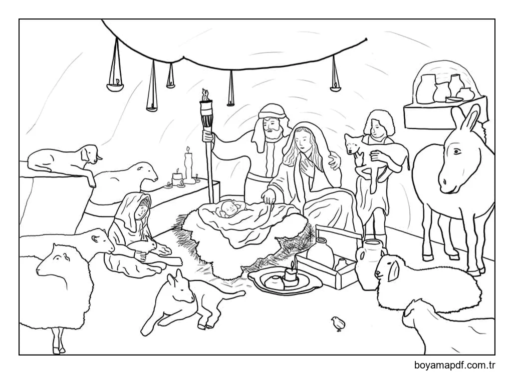Aynı temaya sahip daha fazla boyama sayfasını görüntülemek için yan alandaki önerileri veya Dogum Sahnesi kategorisini inceleyebilirsiniz.
