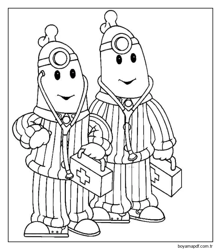Doktorlar Pijamalı Muz Boyama Sayfası