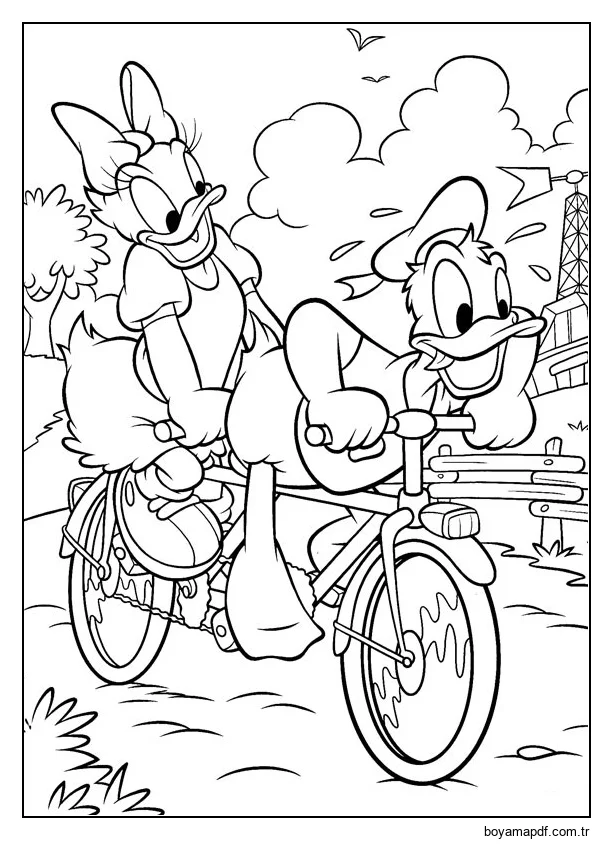 Donald ve Daisy Bisiklet Üzerinde Boyama Sayfası