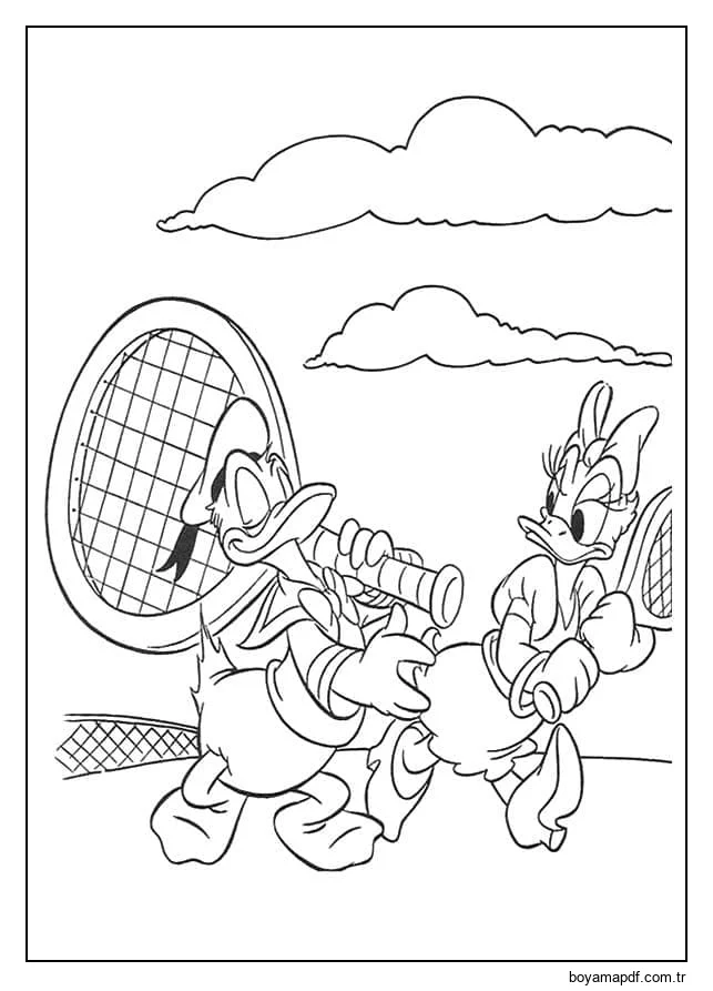 Donald ve Daisy Tenis Oynuyor Boyama Sayfası