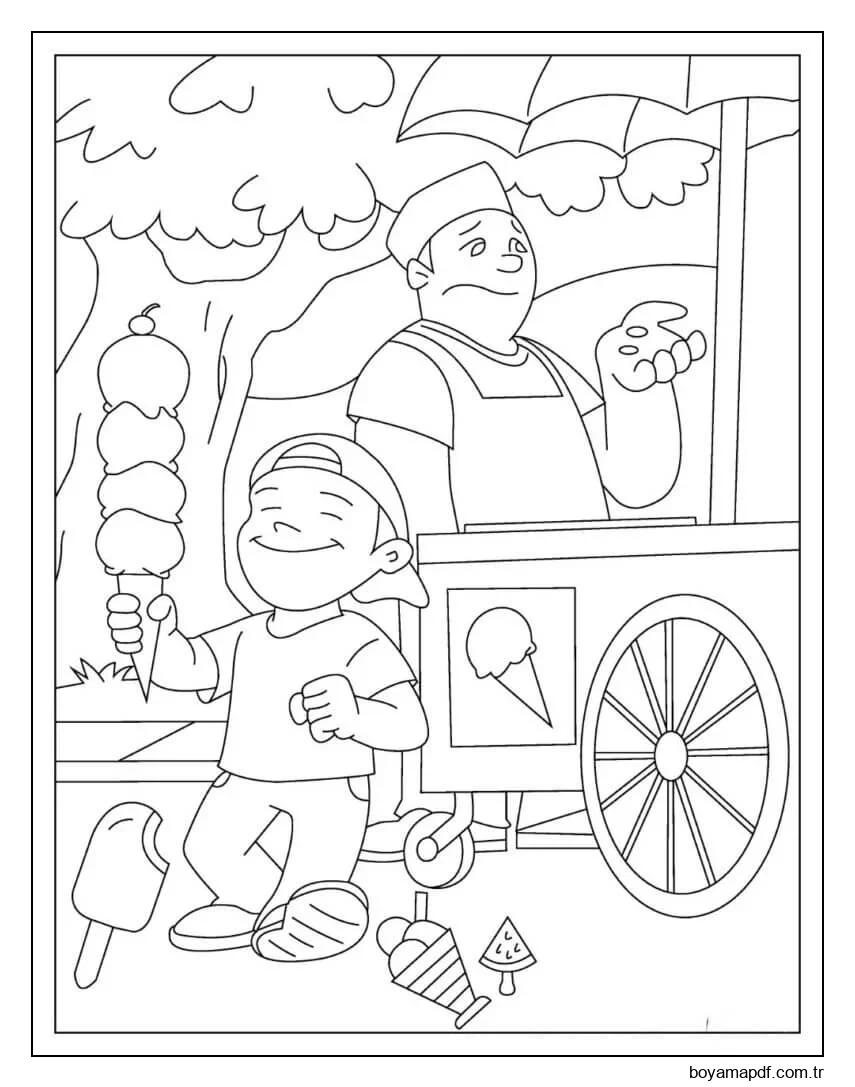Dondurma ile çocuk Boyama Sayfası