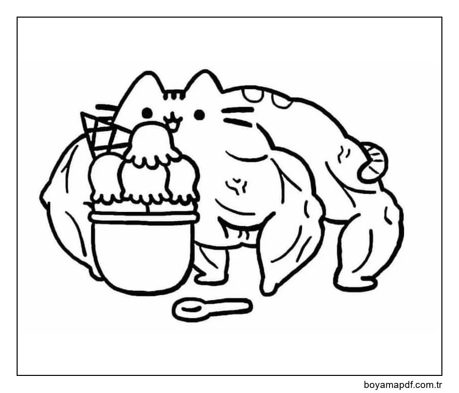 Dondurma ile Güçlü Pusheen Boyama Sayfası