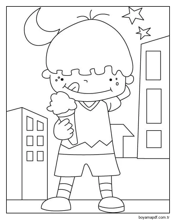 Dondurma ile Gülümseyen çocuk Boyama Sayfası