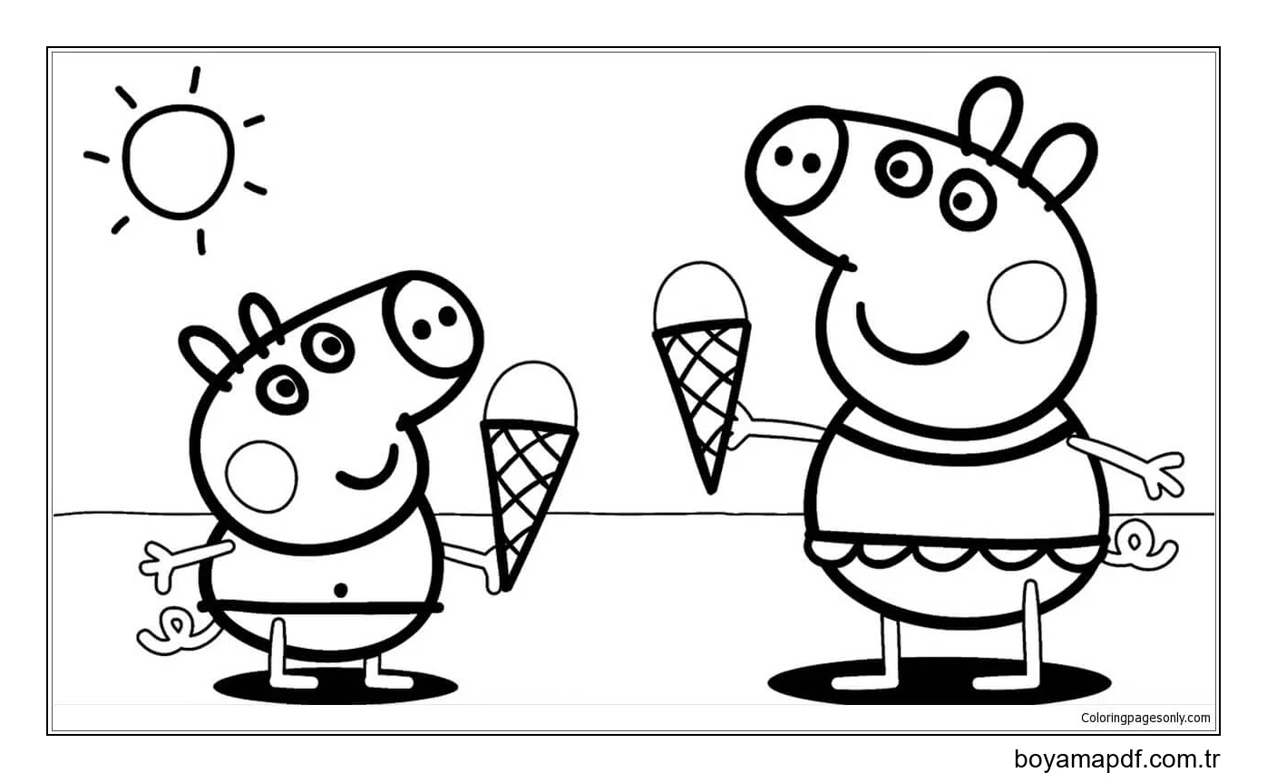 Dondurma ile Peppa Domuz Boyama Sayfası