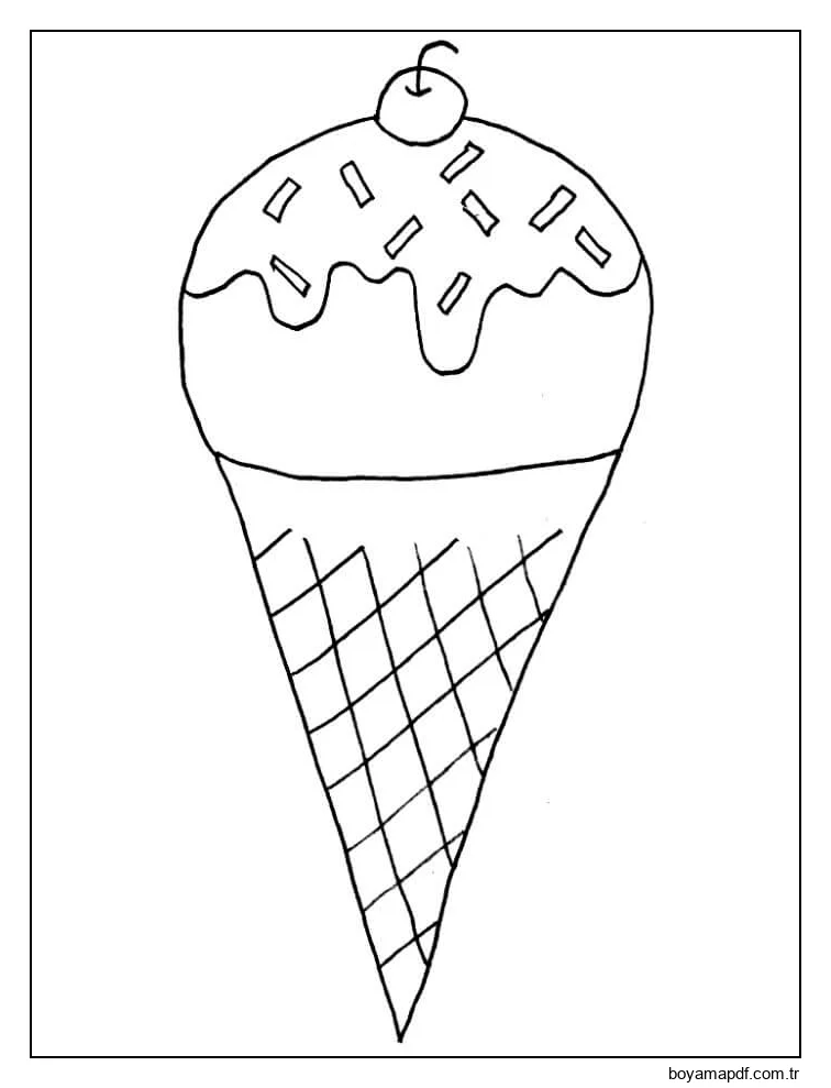 Dondurma Külahları ve Kiraz Boyama Sayfası