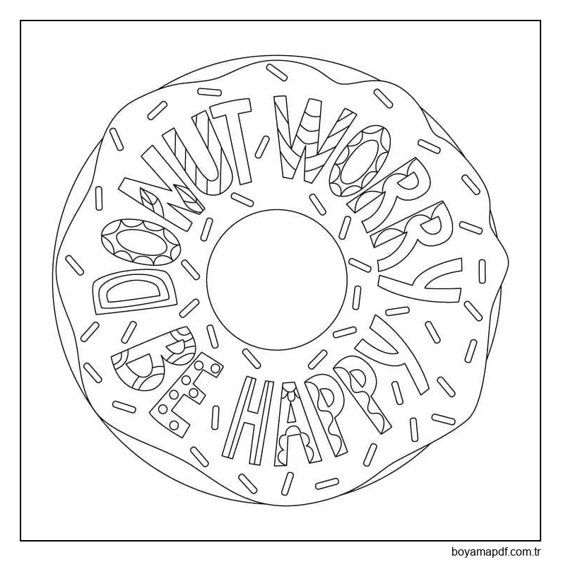 Donut Endişelenme Mutlu Ol Boyama Sayfası