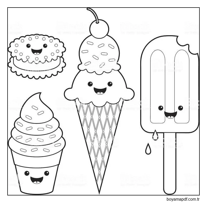 Dört Dondurma Boyama Sayfası