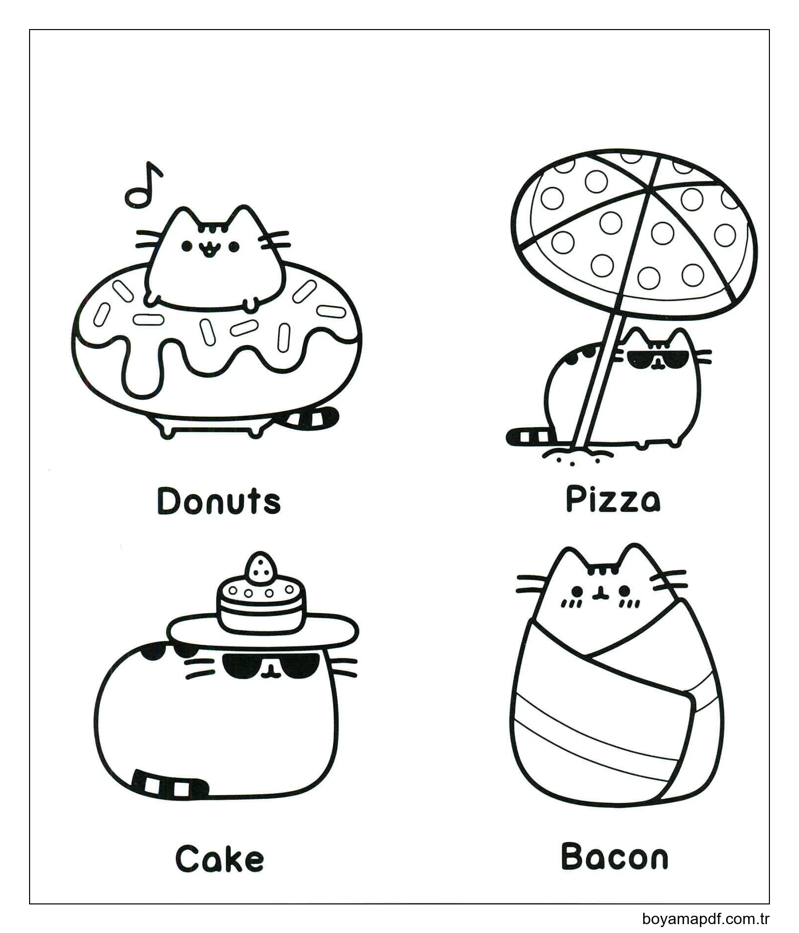 Dört Gıda ile Pusheen Boyama Sayfası