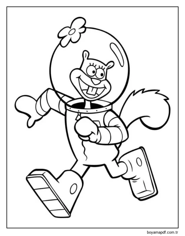 Eğlenceli Sandy Cheeks Koşusu Boyama Sayfası