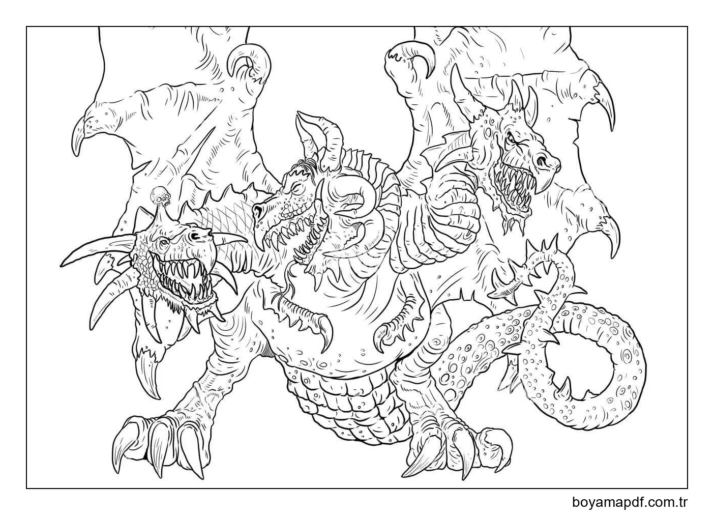 Ejderha Üç Başlı Boyama Sayfası