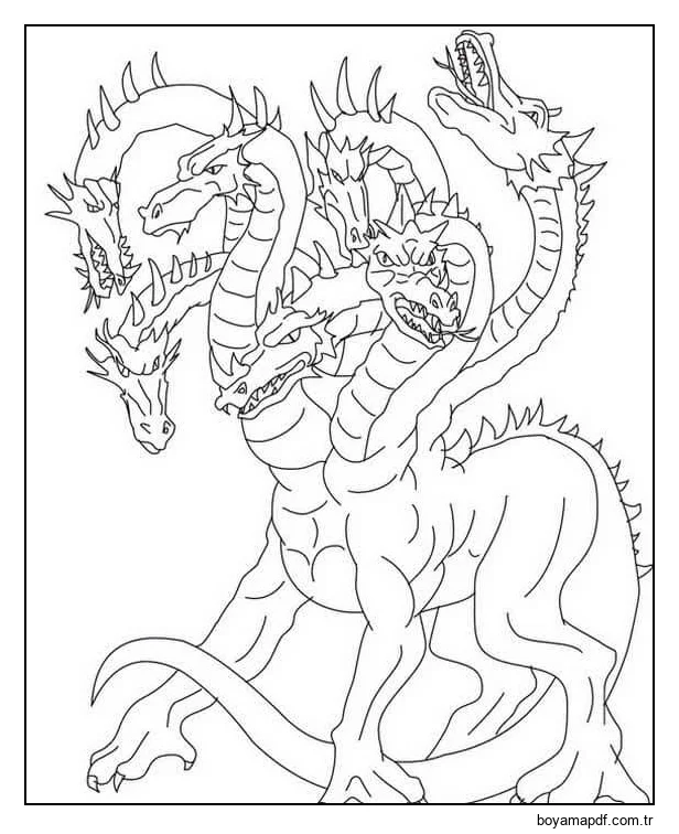 Ejderha Yedi Başlı Boyama Sayfası