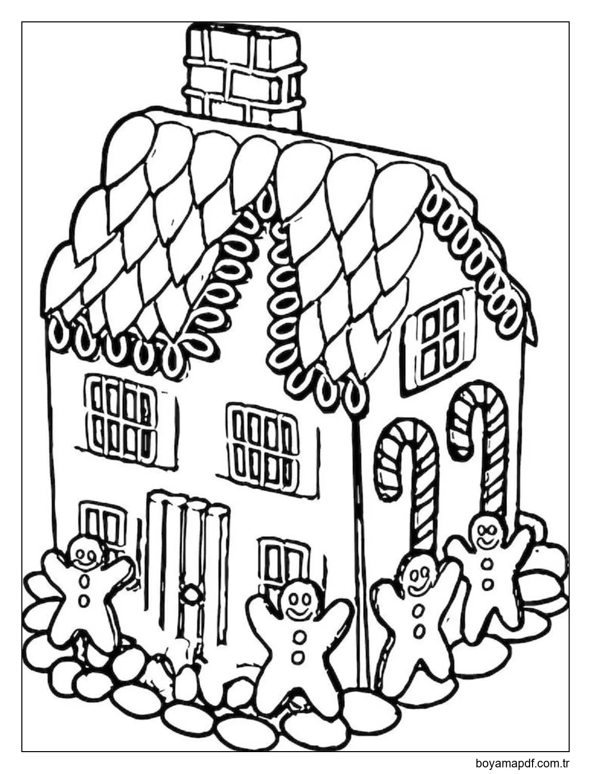 Elle Çizilmiş Zencefilli Kurabiye Evi Boyama Sayfası