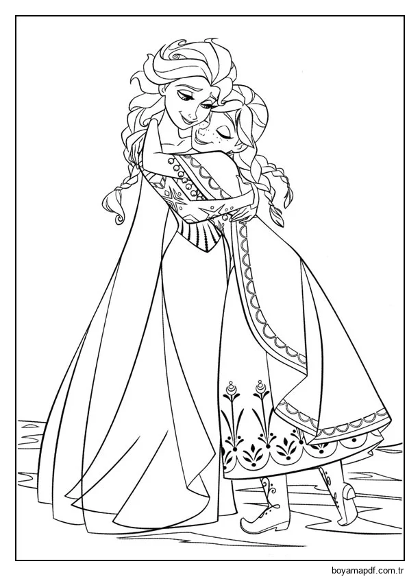 Elsa Ve Anna Sarılma Boyama Sayfası