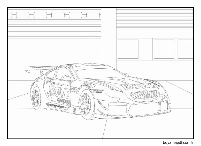 Etiketlerde BMW yarış arabası Boyama Sayfası