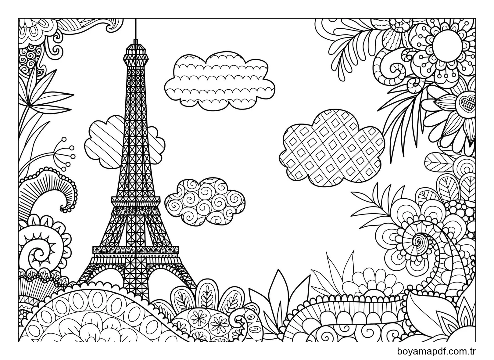 Eyfel Kulesi manzarası Boyama Sayfası