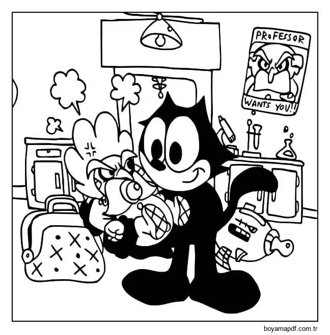 Felix Kedi ve Bebek Profesör Boyama Sayfası