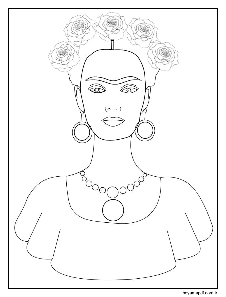 Frida Kahlo çocuklar için yazdırılabilir Boyama Sayfası