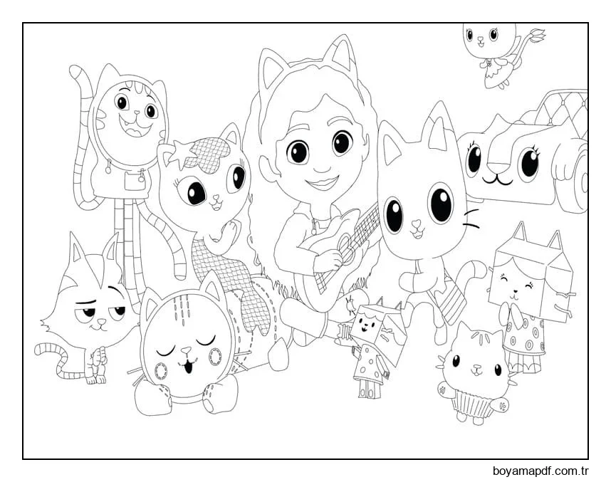 Gabby'nin Bebek Evi'ndeki karakterler Boyama Sayfası