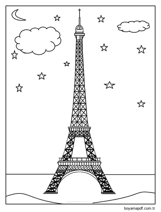 Aynı temaya sahip daha fazla boyama sayfasını görüntülemek için yan alandaki önerileri veya Eyfel Kulesi kategorisini inceleyebilirsiniz.