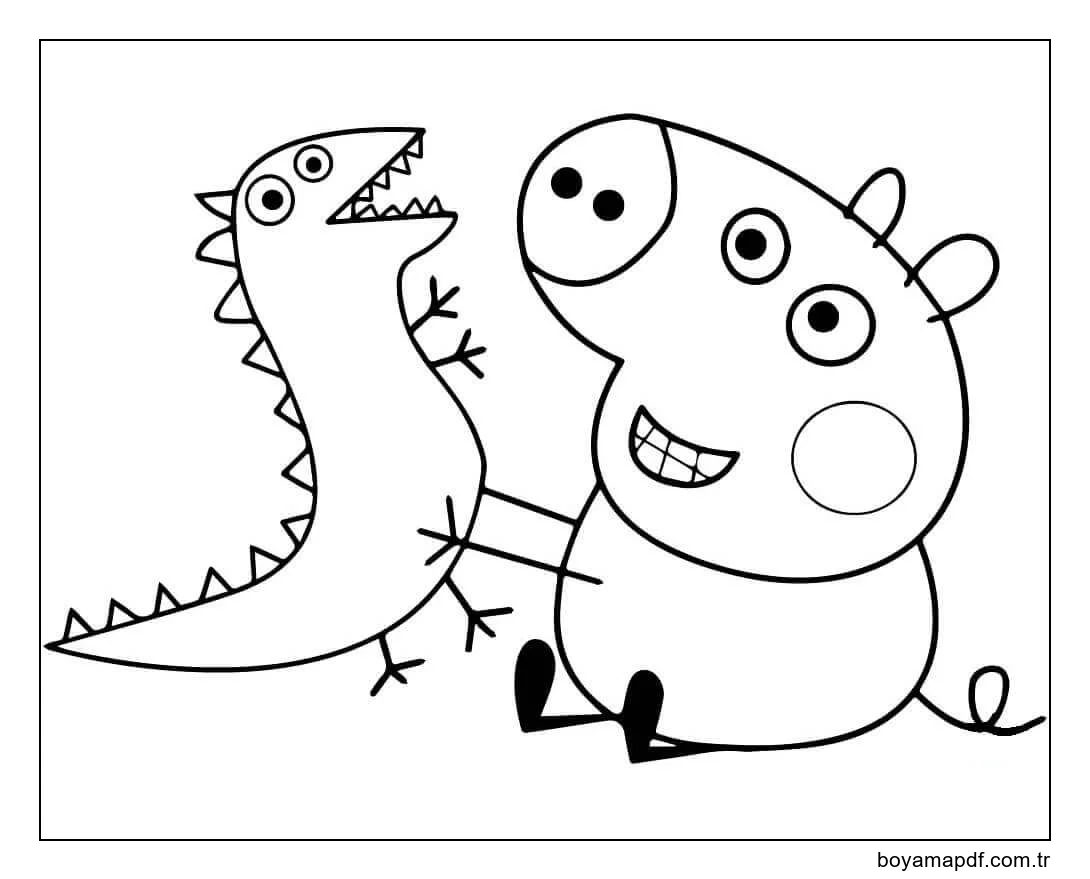 George Pig Ejderhayla Oynuyor Boyama Sayfası