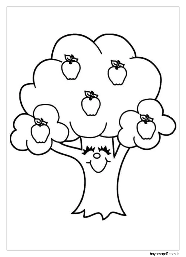 Gülümseyen Elma Ağacı Boyama Sayfası