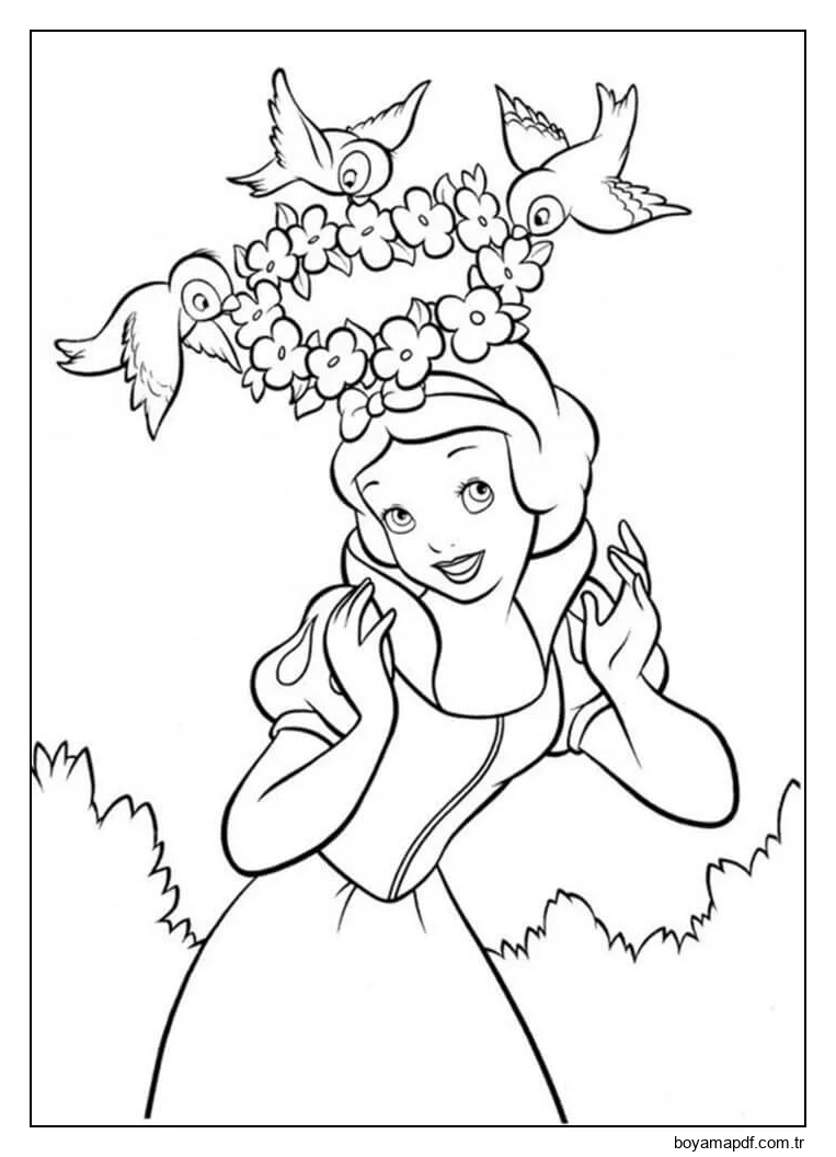Aynı temaya sahip daha fazla boyama sayfasını görüntülemek için yan alandaki önerileri veya Pamuk Prenses kategorisini inceleyebilirsiniz.