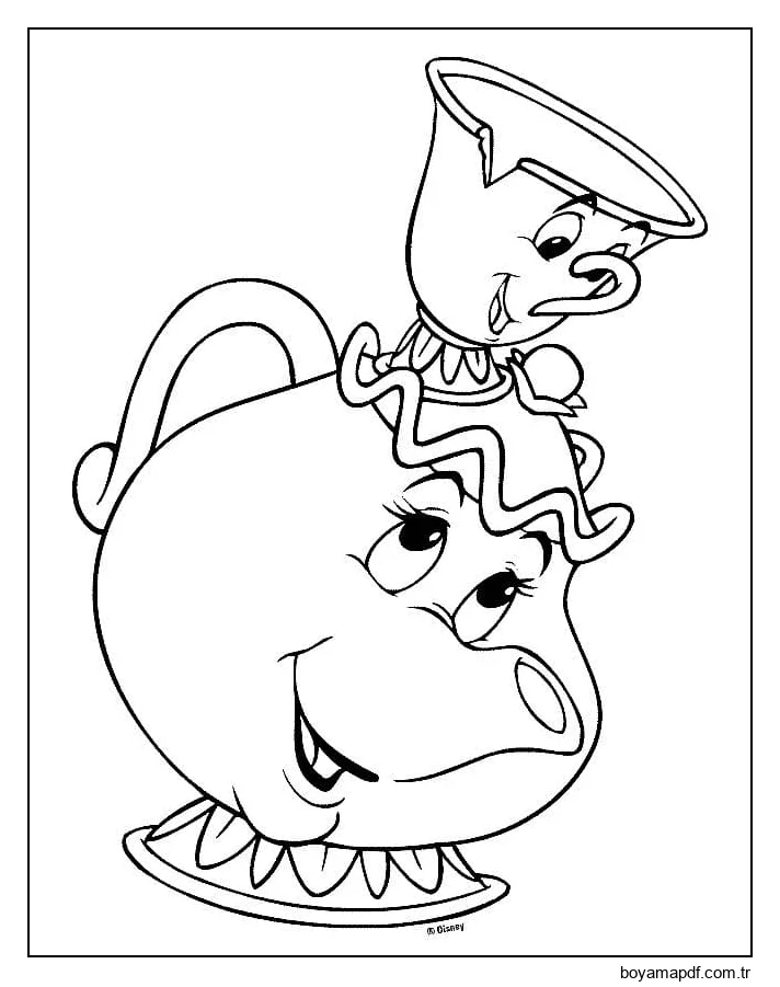 Güzel ve Çirkin'den Chip ve Bayan Potts'u çizin Boyama Sayfası