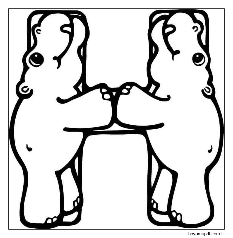H Harfi Iki Su Aygırı Boyama Sayfası