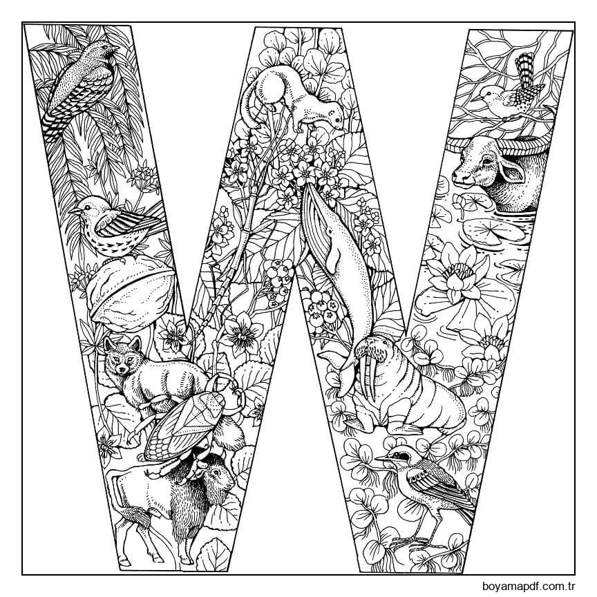 Harf W Hayvan Boyama Sayfası