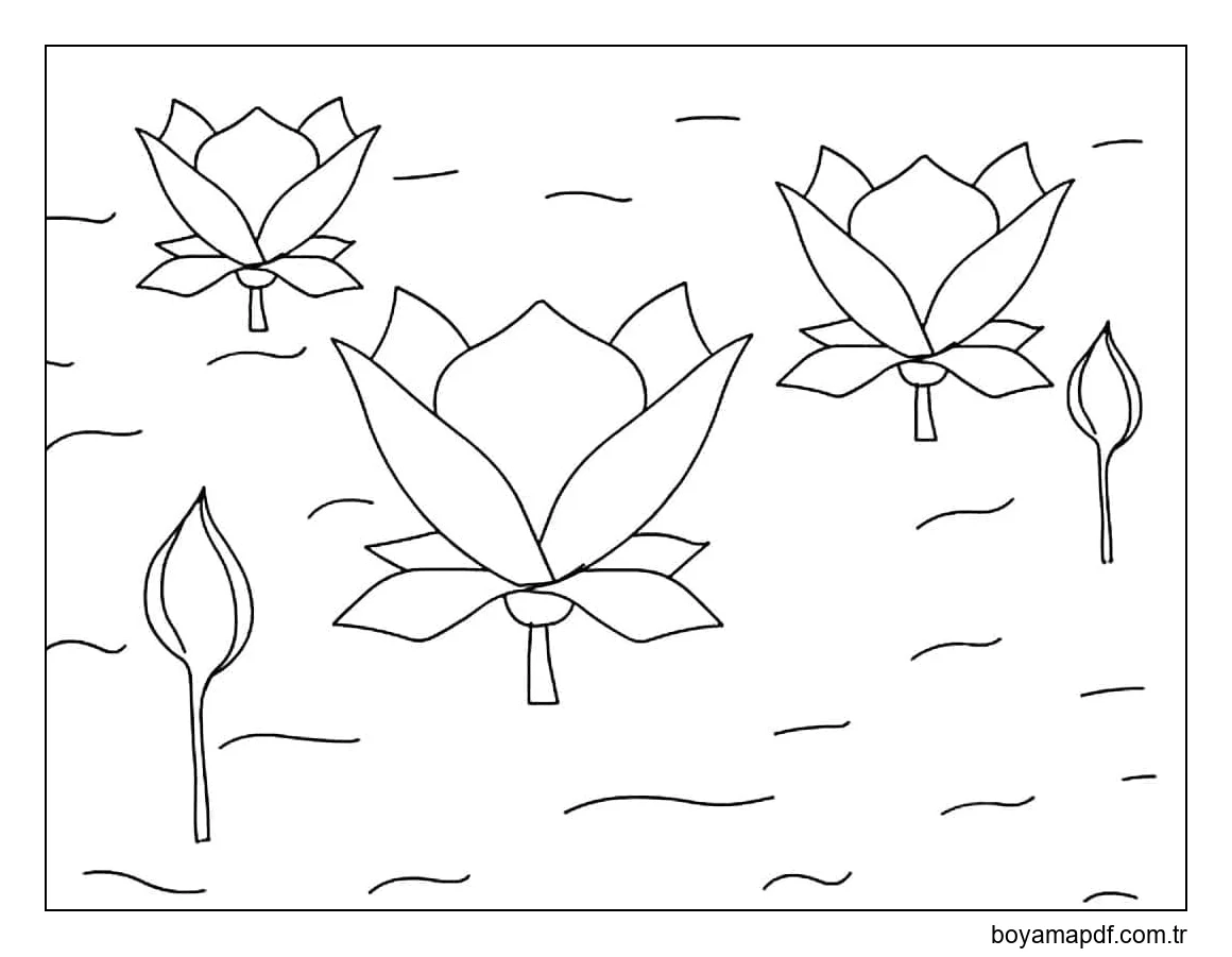 Havuzdaki Lotus Çiçekleri Boyama Sayfası