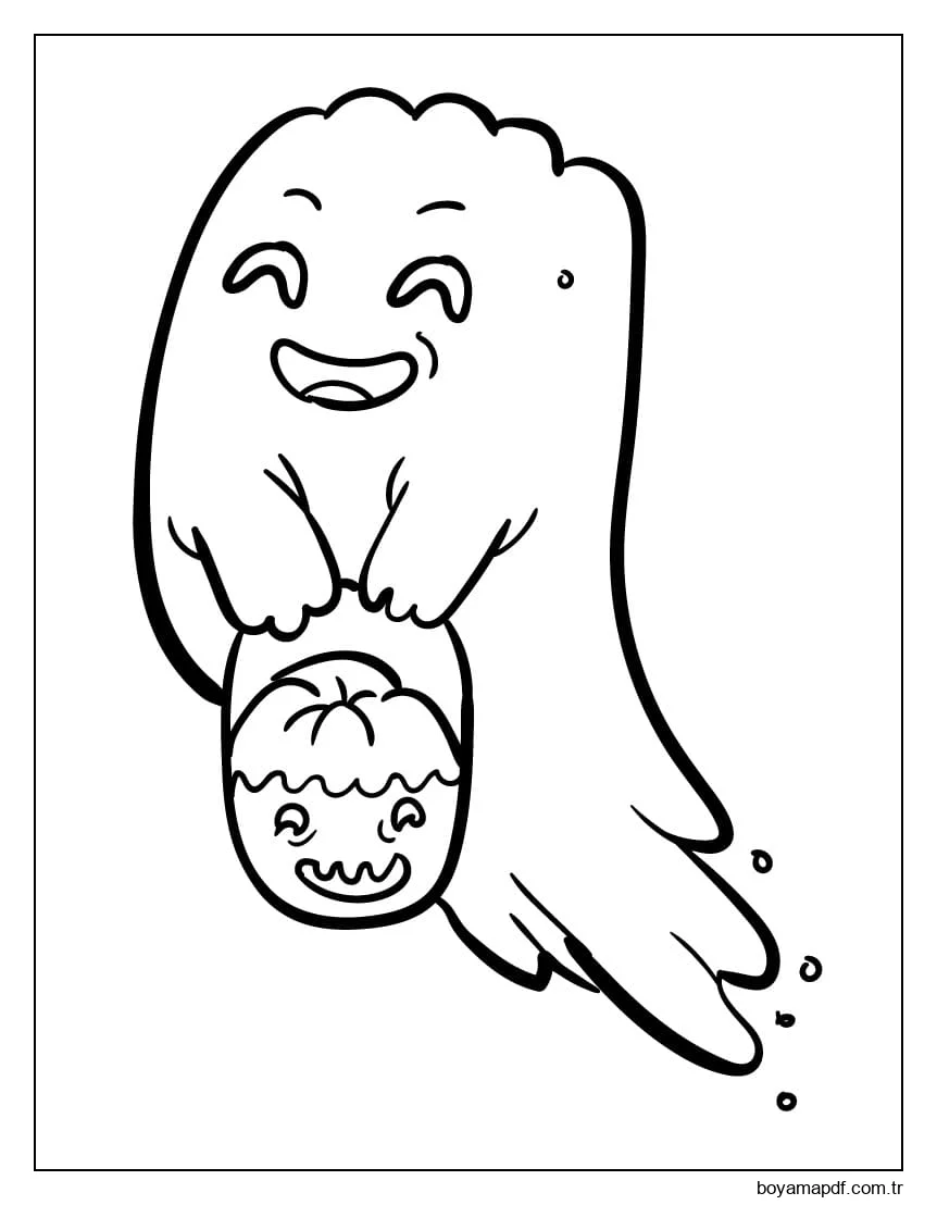 Hayalet ve Şeker Çantası Boyama Sayfası