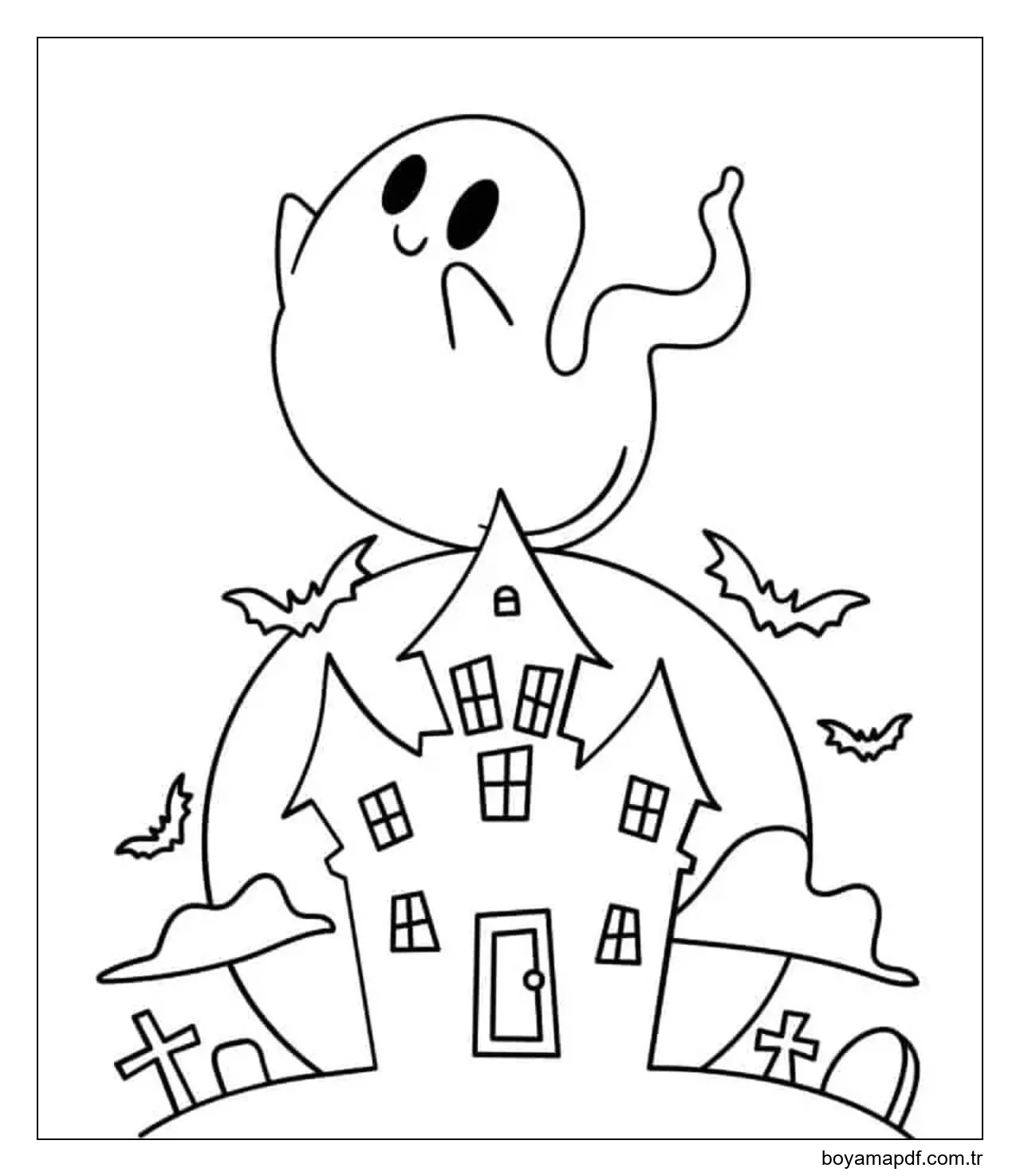 Hayalet ve Terk Edilmiş Ev Boyama Sayfası