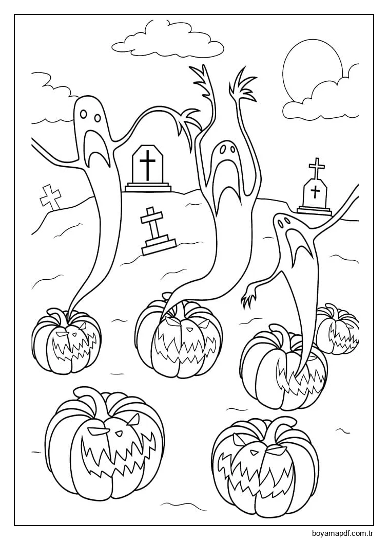 Hayaletler ve Balkabakları Boyama Sayfası