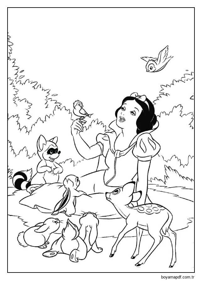Hayvanlarla Pamuk Prenses Boyama Sayfası