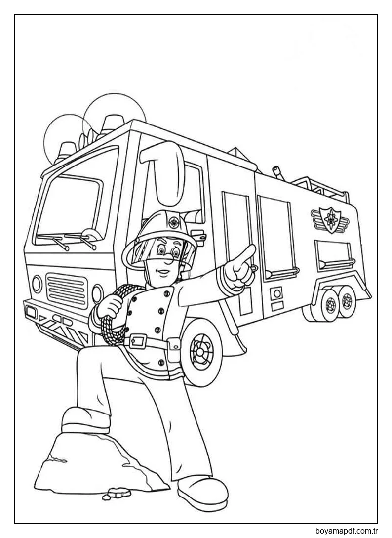 İtfaiye Aracı ile Havalı İtfaiyeci Sam Boyama Sayfası