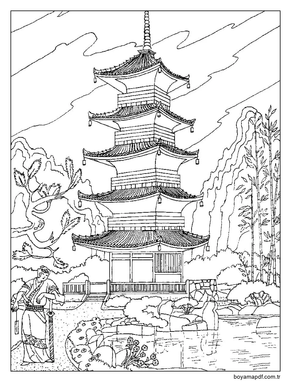 Japon Pagodası Boyama Sayfası