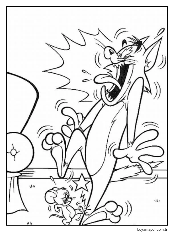 Jerry, Tom'u Tekmeliyor Boyama Sayfası