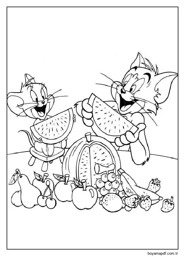 Jerry ve Tom Karpuz Yeme Boyama Sayfası