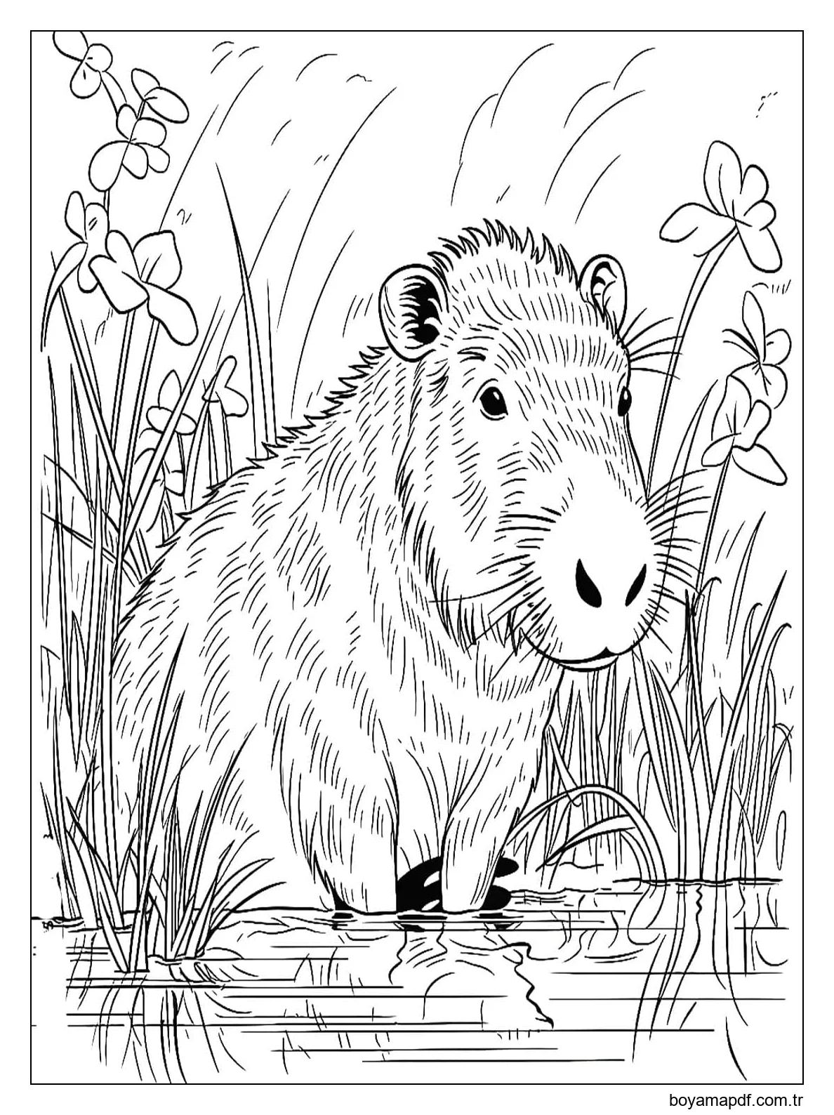 Kapibara'nın Serbest Çizimi Boyama Sayfası