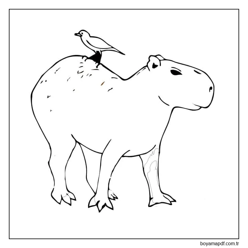 Kapibara ve Bir Kuş Boyama Sayfası