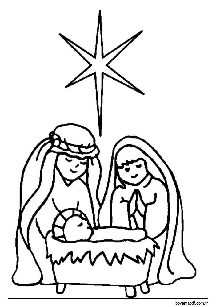 Aynı temaya sahip daha fazla boyama sayfasını görüntülemek için yan alandaki önerileri veya Dogum Sahnesi kategorisini inceleyebilirsiniz.