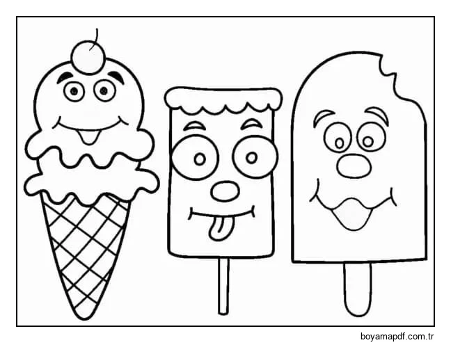 Karikatür Dondurma Boyama Sayfası