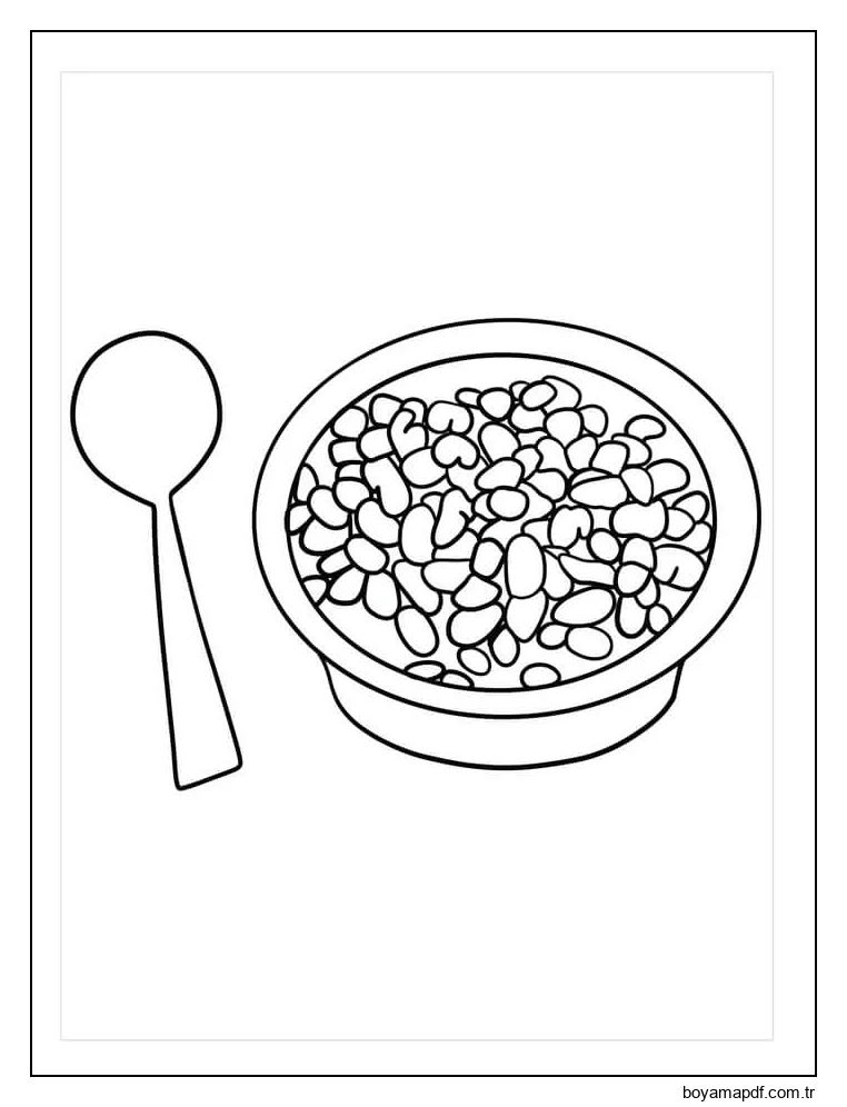 Kaşık ve Fasulye Tabağı Boyama Sayfası