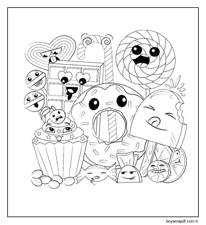 Kawaii Yemek çocuklar için Boyama Sayfası