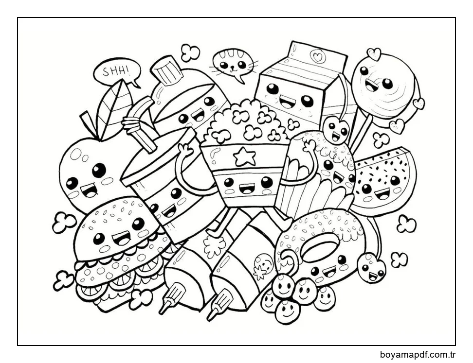 Kawaii Yemek çocuklar için ücretsiz yazdırılabilir Boyama Sayfası