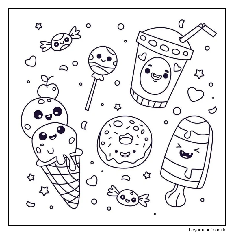 Kawaii Yemek çocuklar için yazdırılabilir Boyama Sayfası