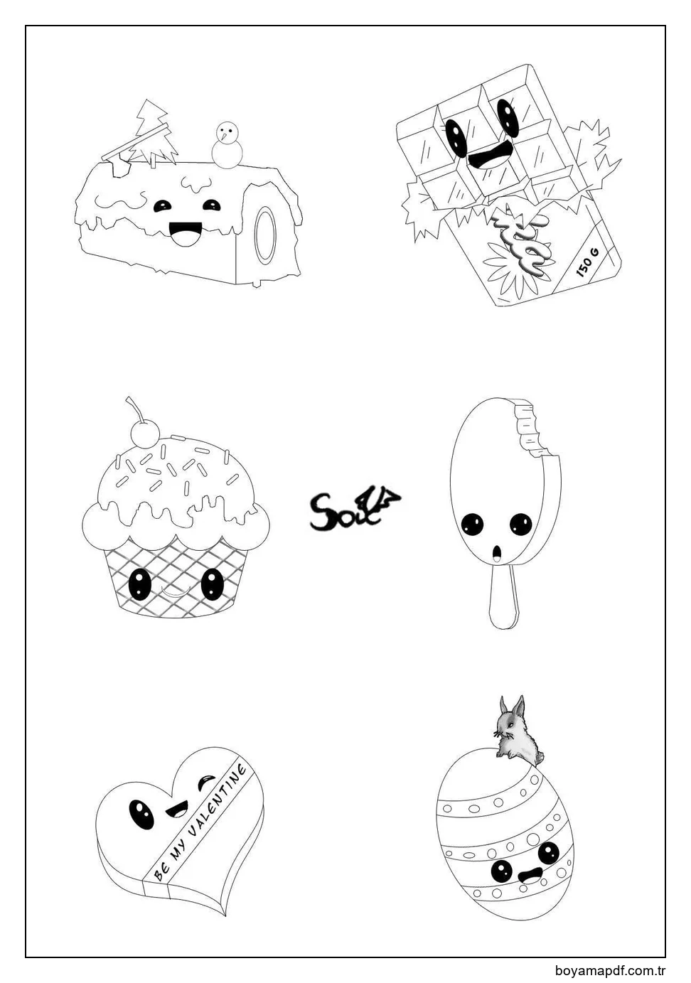 Kawaii Yemek ücretsiz Kolay Boyama Sayfası