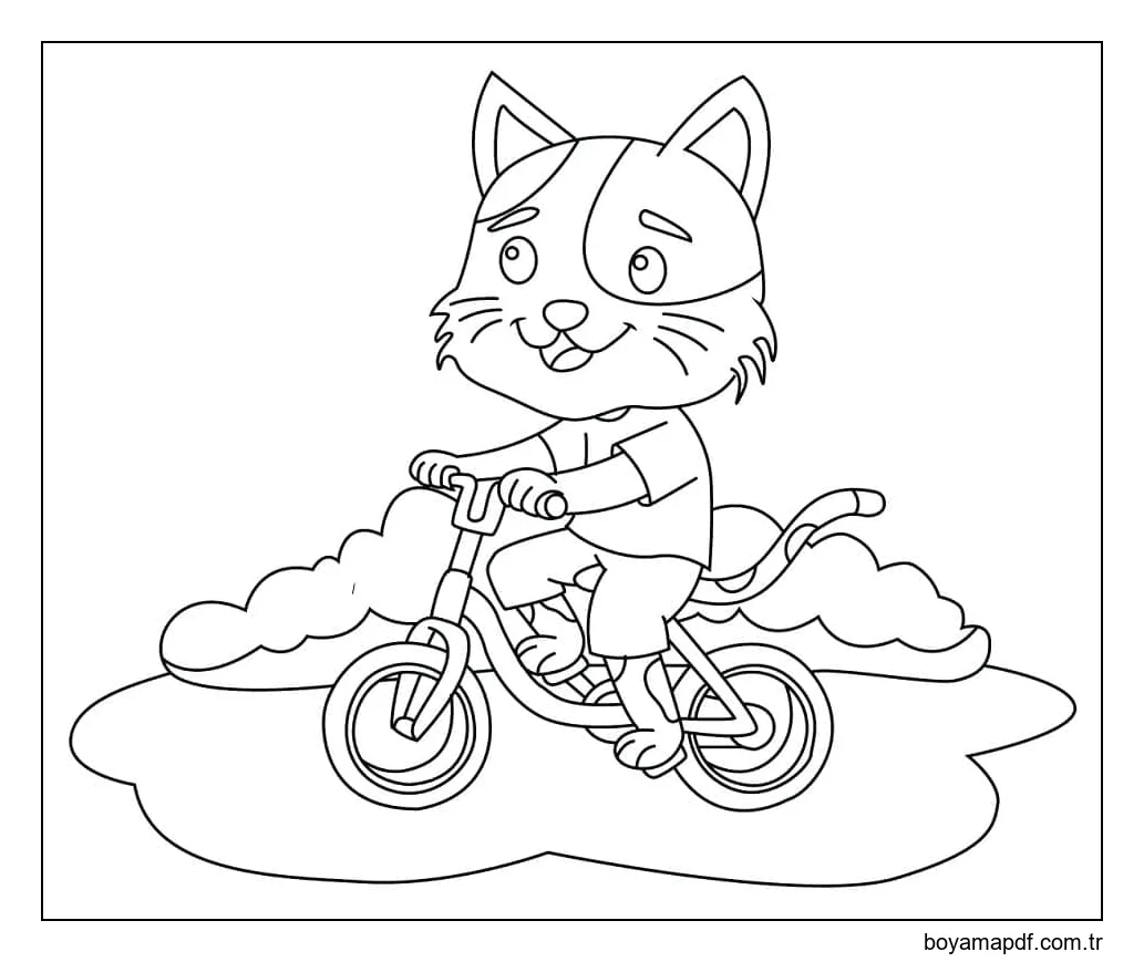 Kedi Bisiklet Sürüyor Boyama Sayfası